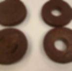 Using a deep 2 inch biscuit cutter cut out two holes in the two center layers.